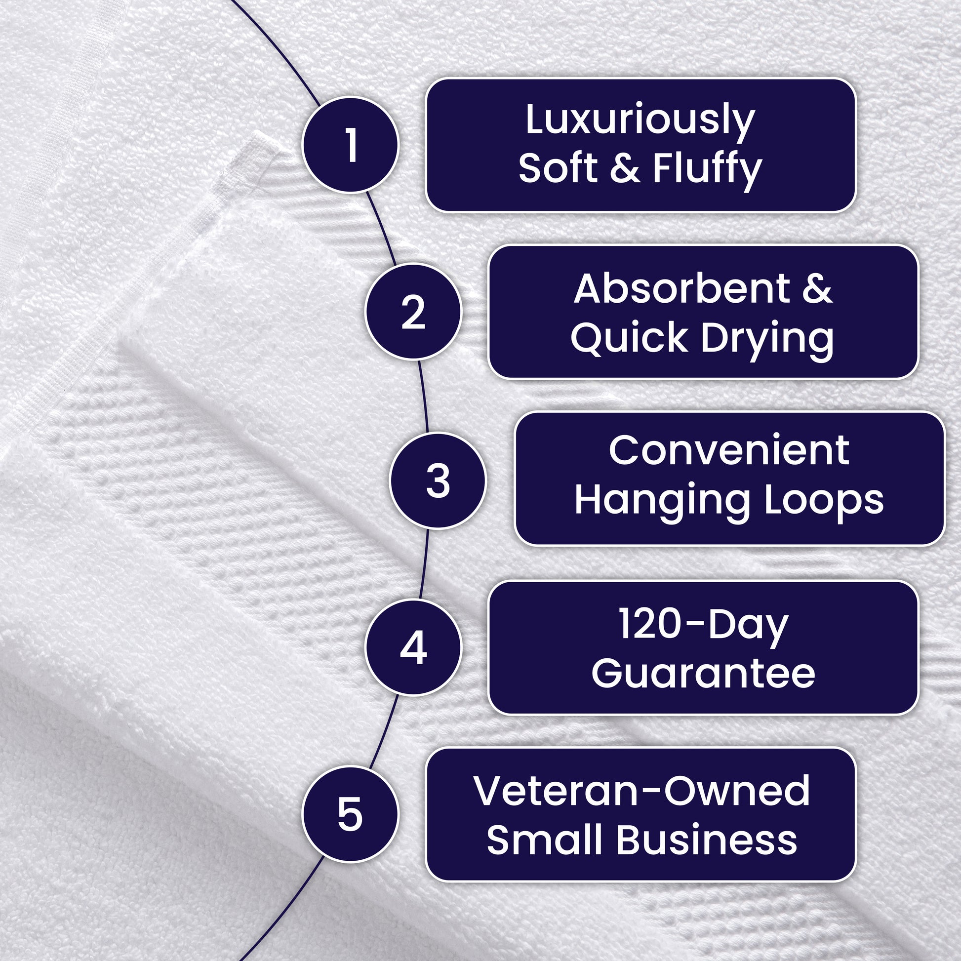We're a veteran-owned small business that proudly stands behind every towel we produce. Our industry-leading 120-day guarantee means if you're not thrilled with your towels, you can return them for a refund or choose a free replacement - no fine print, no hassles!